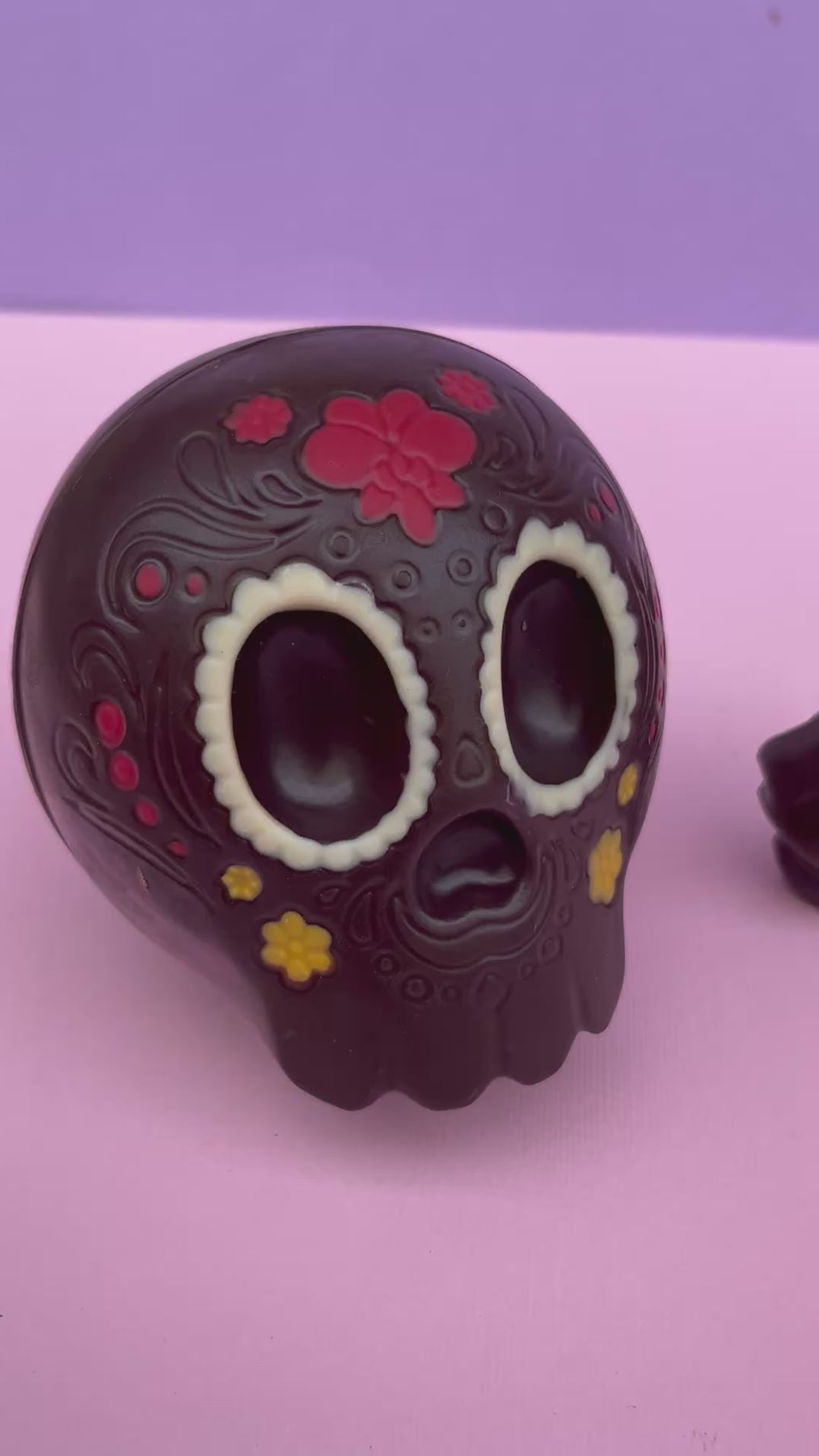 Ispirata alla tradizionale festa messicana dei morti, la nostra testa di morto di cioccolato artigianale celebra la vita, il colore e la dolcezza. Realizzata con finissimo cioccolato fondente 71% di Madagascar, è decorata a mano con dettagli vivaci che ricordano le celebri calaveras messicane, simboli di gioia e memoria.