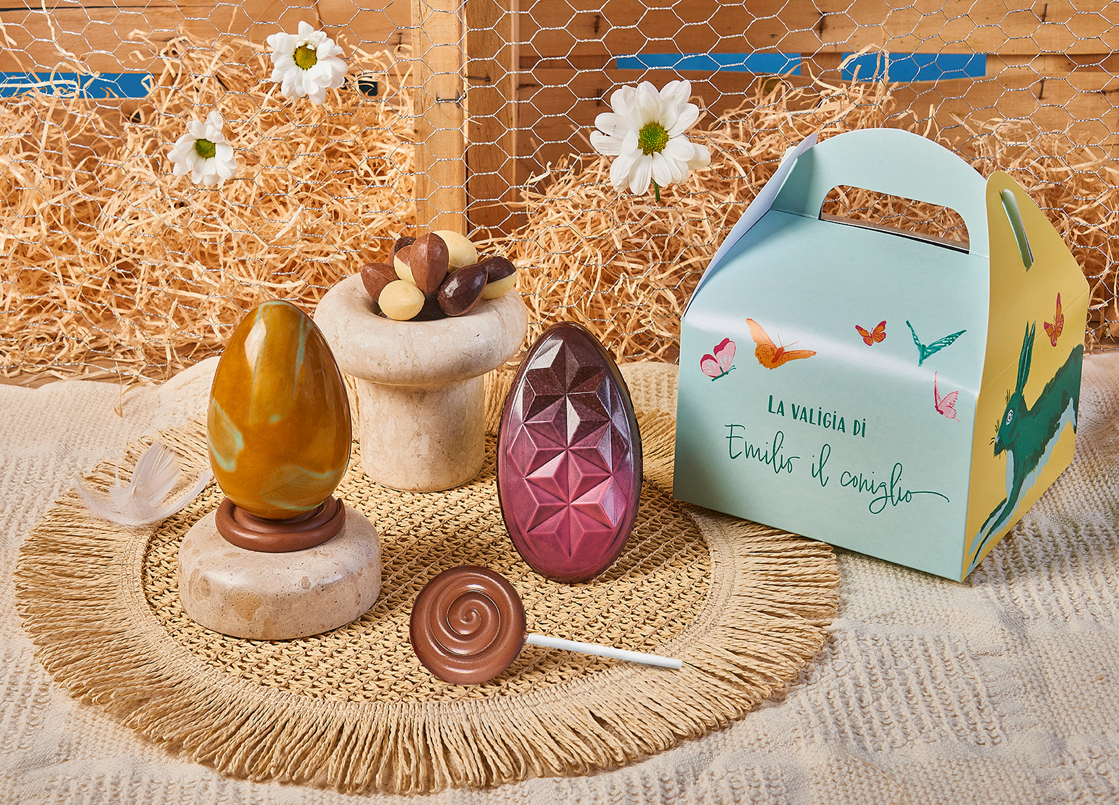 Il pensierino ideale per piccoli e grandi amatori di cioccolato. La valigia di Emilio il Coniglio contiene un mix dei nostri best seller: